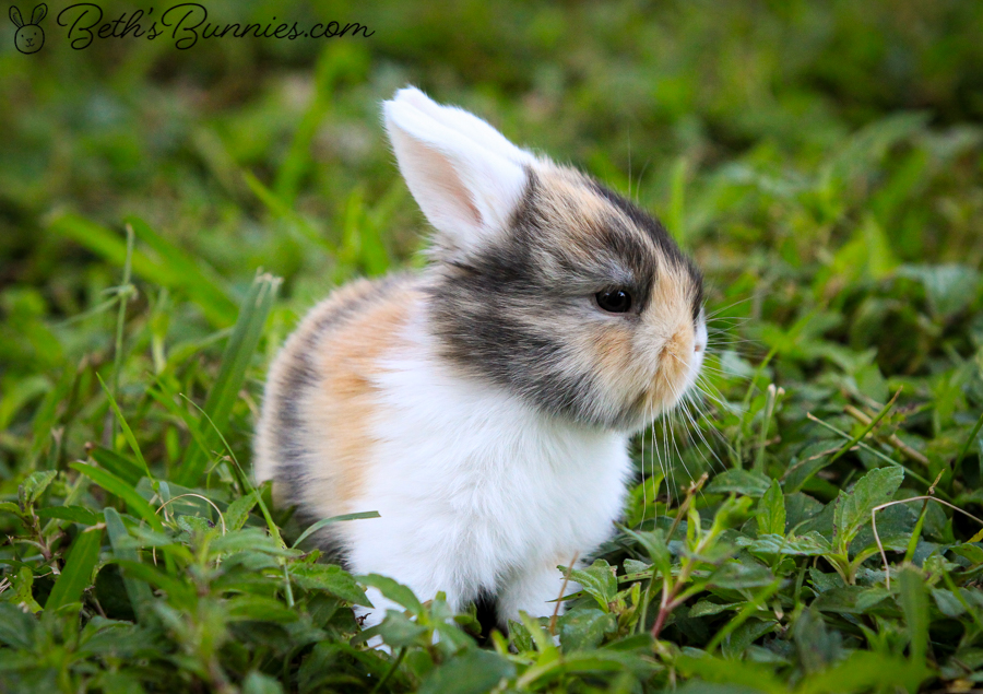 Nala is our blue-eyed white Holland Lop doe. She is stunning in her fluffy pure white fur and “pools of water” blue eyes. She doesn’t like to be held, per se, but will sit for hours in our laps getting rubs. I have watched a few football games with her in my lap,always careful not to get too excited. Her offspring when paired with Romeo are usually tri-colored with loud, bright colors, in striking Harlequin patches.